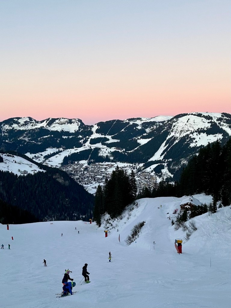 This resulted in a very long day on the slopes, especially for the kids. But, in return we were treated to a breathtaking sunset over the mountains. ππ